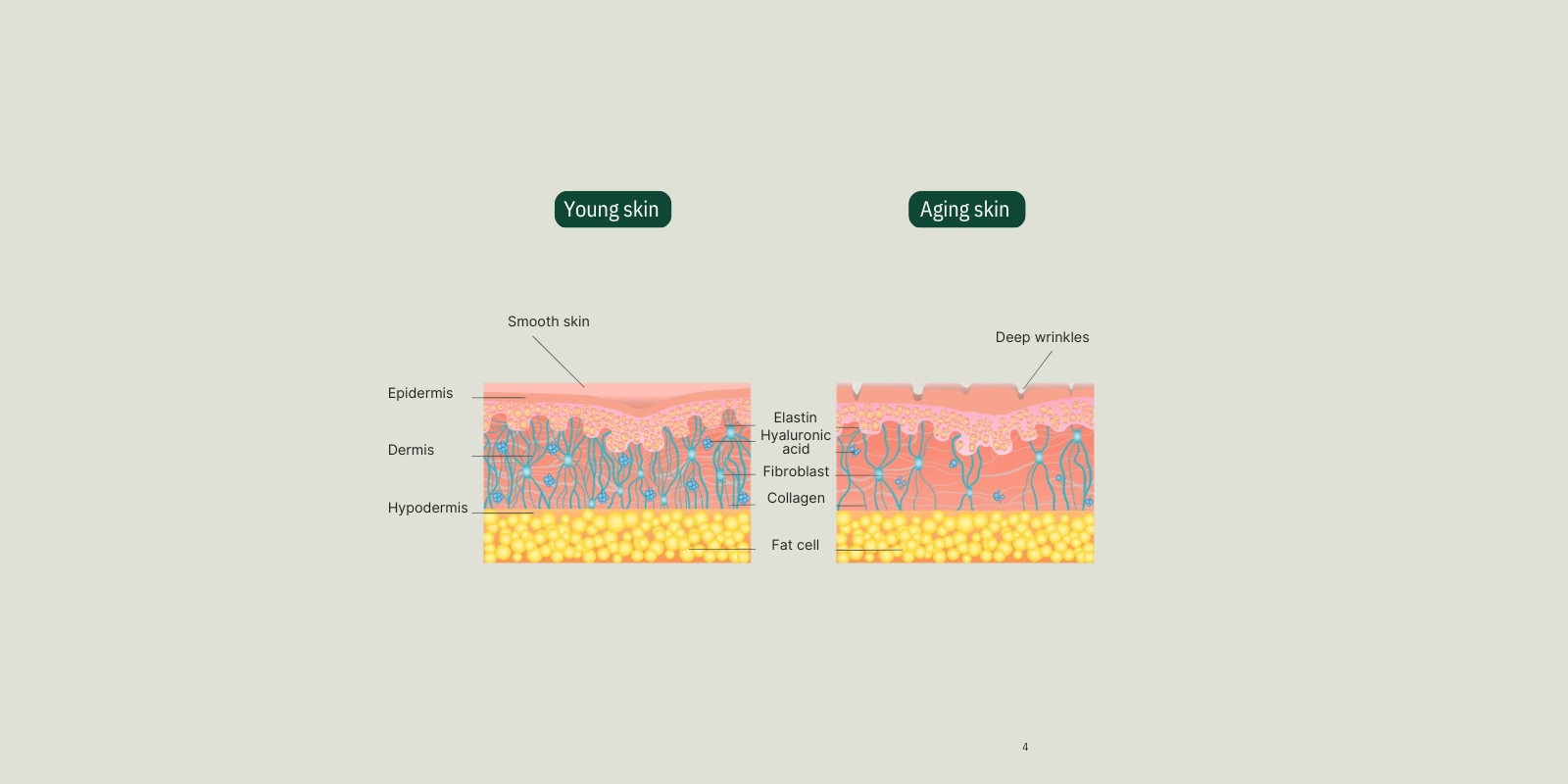 Skin appearance is the primary visual indicator of health and is the part that first presents the external symptoms of aging. Skin is the largest organ in the body, accounting for approximately 15% of body weight. It is made up of 3 layers: the epidermis, the dermis, and the subcutaneous tissue. The dermis is the central barrier of the skin. It is made up of collagen and elastin. A significant component of the dermis is collagen, which is responsible for the structural support of the skin. With age, the amount of collagen in the skin decreases and leads to the formation of thin wrinkles. Maintaining the amount of collagen is the key to preventing the signs of skin aging. With our clinical study (NCT05235997), we aim to demonstrate that our Primedge collagen peptides - with a consistent intake - can improve the general and structural condition of the skin as well as prevent skin aging.